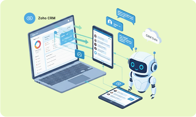 Build no-code chatbots that can “read” your CRM. Your bot can check a customer’s order status, loyalty points, or assigned account manager directly from Zoho and provide instant, personalized answers.