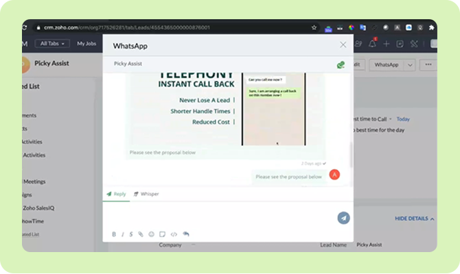 Picky Assist is one of the first companies to build a super tight and seamless integration with WhatsApp & Zoho CRM.