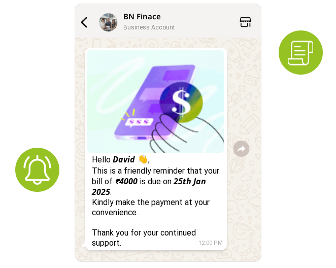 Send timely and friendly reminders for invoices, renewals, or EMIs with payment links.